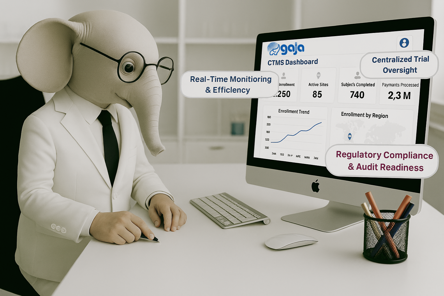 GAJA CTMS(Globally Accessible CTMS with Justified Accuracy) is specialized software used by pharmaceutical companies, CROs (Contract Research Organizations), research sites, and academic institutions to plan, track, and manage clinical trials more efficiently. It acts as a central hub for all trial-related operational, financial, and regulatory information.